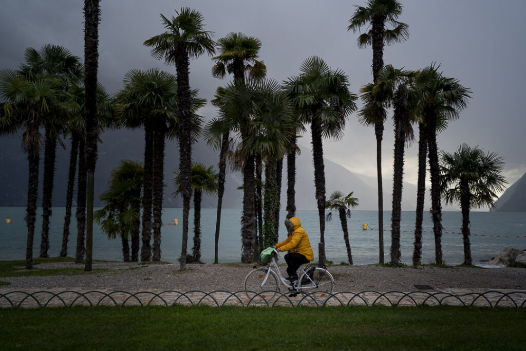 Cycliste échappant aux averses, Arco, Italie.@helene_decaestecker