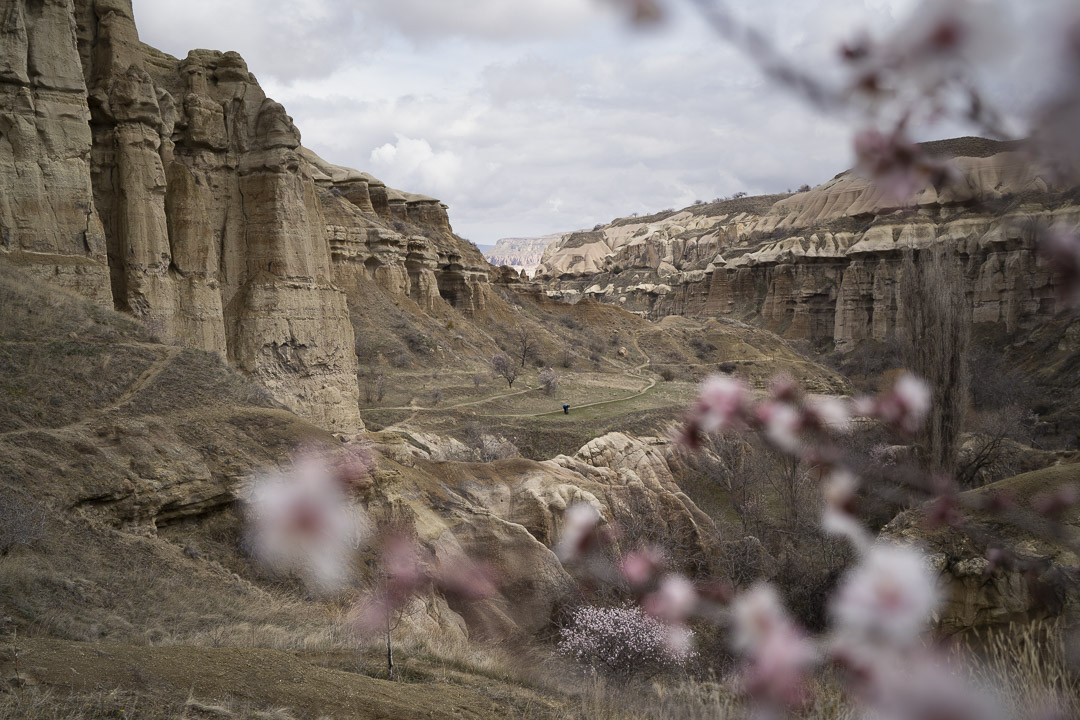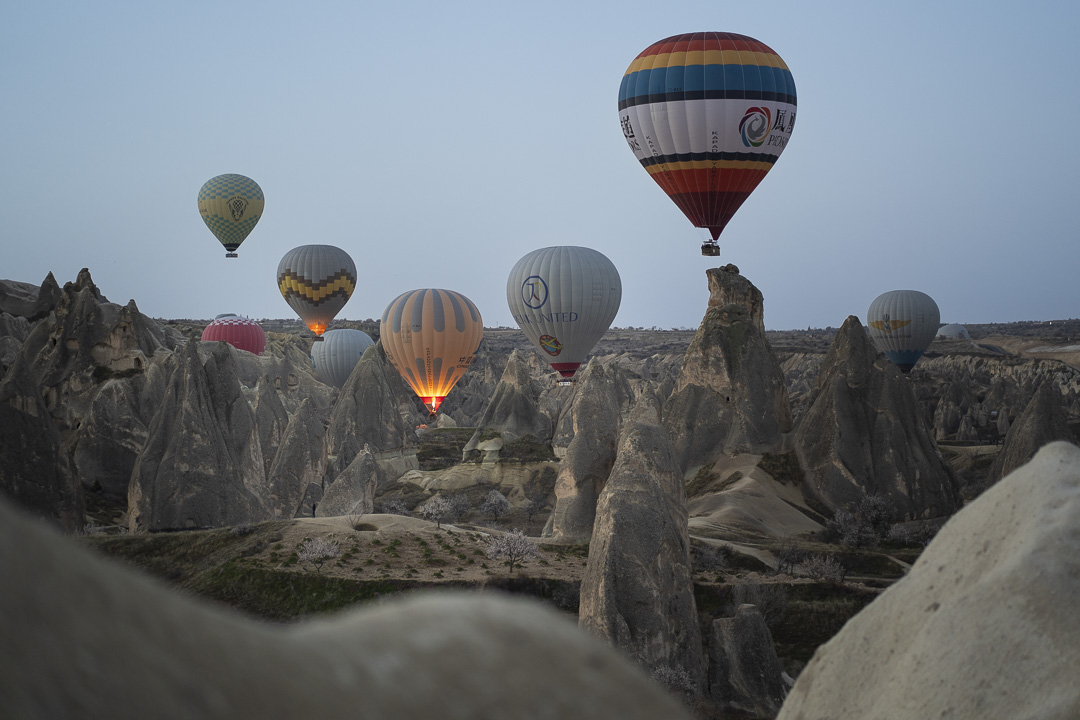 On se perd dans les mouvements de ce berceau où l’humanité s’est brassée, embrasée, parfois isolée. Au centre de la Turquie, la Cappadoce est l’un de ses lieux chargé d’histoire. Les habitations troglodytes, autrefois refuges des peuples hittite et chrétien pour y fuir les persécutions, sont désormais un espace de jeu pour les randonneurs cherchant à résoudre ces mystères civilisationnels. Les balades à cheval, les tours en quad et les vols en montgolfière s’invitent dans les vallées. Les vestiges s’accompagnent alors de couleurs, de formes, d’odeurs et de bruits contemporains.