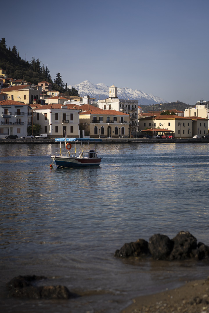 Gythio : mer, oliviers, femme de Sparte et repos.