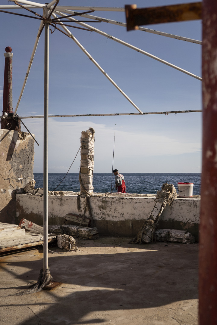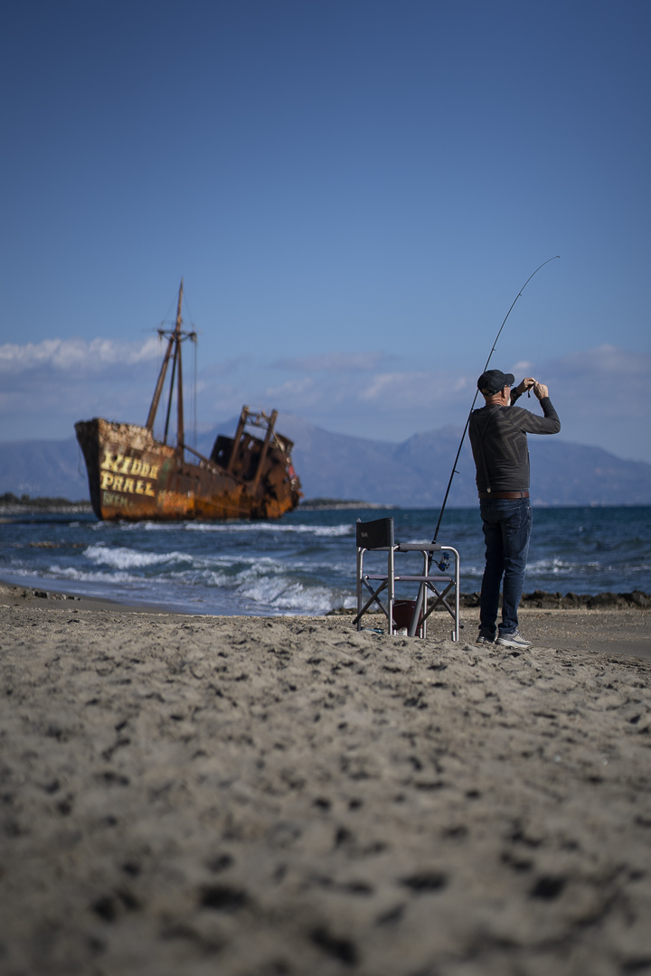 Gythio, des oliviers sur la terre, un phare sur la mer. Le bruit des vagues sur les plages vides. Là où Paris enleva Hélène de Ménélas pour l’emmener à Troie. Les Mataki s’éparpillent un peu partout sur les murs des maisons et des magasins pour protéger du mauvais oeil. La résilience des arbres sur le passage manifeste des incendies. À Maní, les terres arides sont séparées par des murets pour marquer la propriété. Le phare de Tainaron, pointe du Péloponnèse ; Vathia, village abandonné ; Areópoli, ville du vent et du départ de l’insurrection pour l’indépendance grecque. Les stigmates des bâtiments, des fenêtres minuscules pour défendre le territoire face aux Ottomans. « La victoire ou la mort », un drapeau. Sparte, ville sans murs et le vestige de l’époustouflante Cité de Mystrás, construite pour sa défense. La liberté des femmes de Sparte et leur déclin contemporain. Stavroula, grecque ayant vécu à Athènes et au Luxembourg, avant de reprendre les terres d’oliviers qu’elle a hérité à Gythio. Un sacerdoce et aussi le seul cadre où elle imagine finir sa vie. Ses habitudes, son yaourt, son charcutier, son boulanger, ses marchés… Ses pensées : le Gi Gong, la numérologie, le taux d’humidité sur sa santé ; corruption des uns, trahison des autres ; le covid, les complots, les homosexuels au pouvoir. Son chat roux, Mamadou, son bichon malté, Boubou, ses poules et ses moutons. Les traditions, le 6 janvier, la cérémonie de la bénédiction de Dieu. Un crucifix lancé par le Pope à aller chercher dans la mer le premier pour recevoir ses bénédictions. La nuit tombée, des navires en file indienne voguant sur la mer, plein d’essence pour contourner illégalement l’embargo.