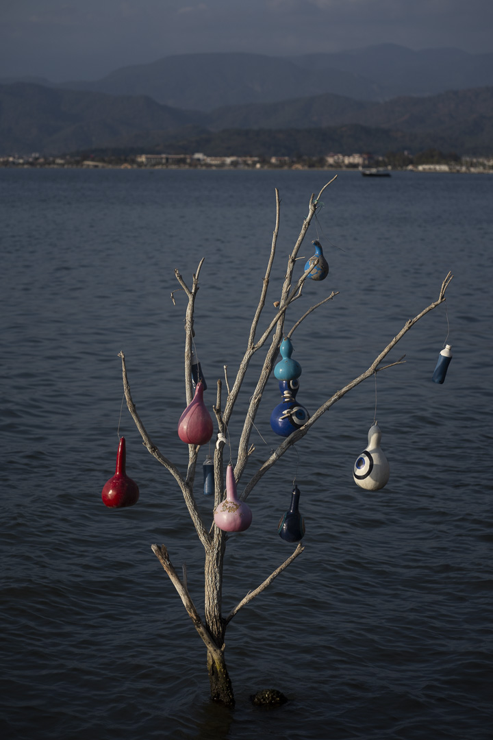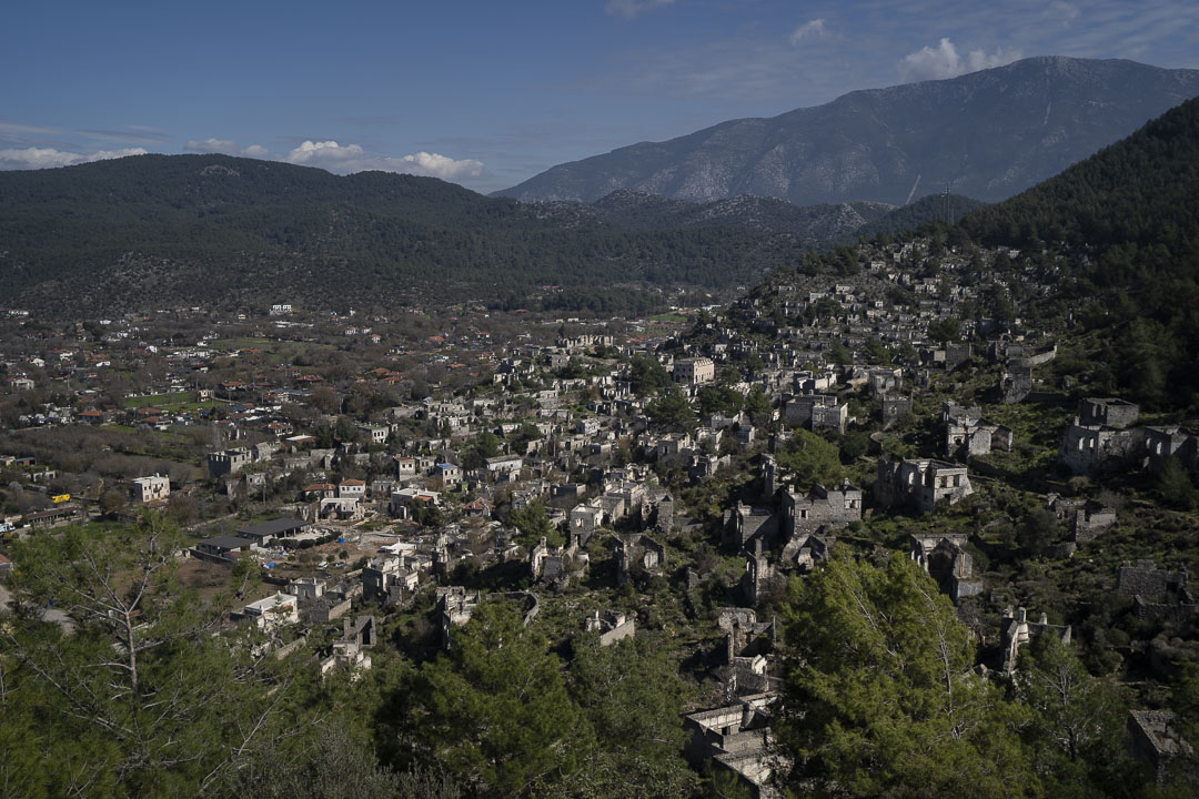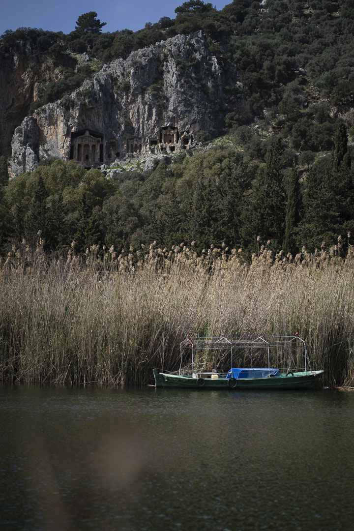 À Fetiyhe, nous rencontrons Daniela, une Bulgare expatriée en Turquie. Elle nous dépose en voiture au bord de la plage. Le lodge, où nous allons l’aider deux semaines, s’y situe. On y dort dans un cabanon, accolé à celui du propriétaire, M.Bisham. Cet homme âgé respire la simplicité et le calme. Sa sagesse s’observe même lorsqu’il se déplace à bicyclette. La barrière de la langue nous limite à lui communiquer toute notre courtoisie. Les maisons se font face pour laisser place à une grande cour, d’arbres, de terre et de sable s’engouffrant à quelques pas dans les vagues de la mer. Le lendemain, nous faisons connaissance avec l’équipe installée dans l’office s’occupant de la réservation des chambres. La saison touristique commence dans deux mois. On y découvre la culture turque : la langue, la nourriture, les traditions, les populations comme le peuple kurde. Un mélange d’Ouest et d’Est se ressent. Dans l’office, on parle anglais. En dehors, on bredouille quelques mots turcs, sinon on parle avec les gestes. On découvre la place centrale du yaourt, des olives, des tomates, des piments, des lentilles, des haricots et des agrumes dans les repas. Une culture agraire se meut : quelques vaches, chèvres et poules. Notre mission consiste à nettoyer les lieux. On enlève les déchets, le bois, le bambou sur la plage ; on s’occupe d’entretenir les plantes, de ramasser les feuilles ou de nettoyer le restaurant. Les jours passent vite autour d’un café, le travail et les bons repas. On visite les alentours. Kayaköy, une ville fantôme autrefois habitée par des Grecques avant la guerre Gréco-turque au début du xx ème siècle. On apprend l’existence du Dastar à Üzümlü, une méthode traditionnelle de tissage. À Fetiyhe, on découvre le portrait de Mustafa Kemal Atatürk qui arbore les rues de la ville et l’intérieur des maisons. Il est considéré comme le père fondateur de la Turquie moderne. La religion musulmane s’entend avec les voix des muezzins qui s’entremêlent en haut de la dizaine de minarets couvrant la ville. Au-dessus de la ville se trouve le tombeau rupestre d’Amyntas. Datant du IVe siècle avant notre ère, ces tombes lyciennes attisent la curiosité des touristes.