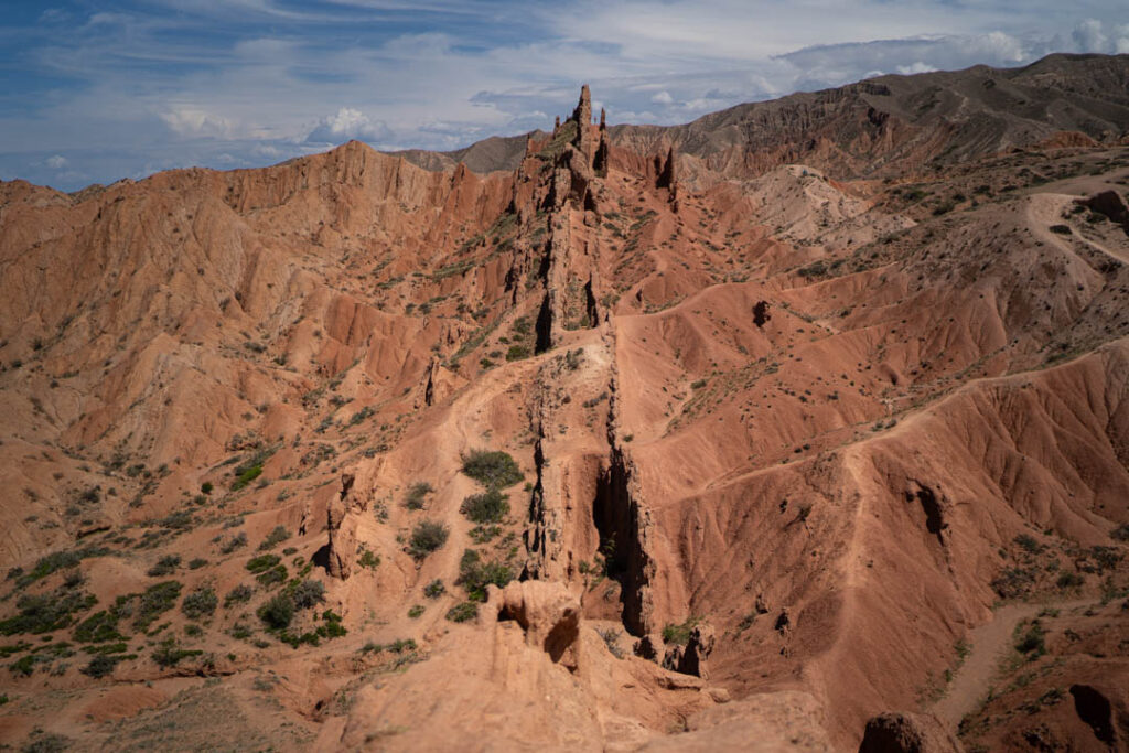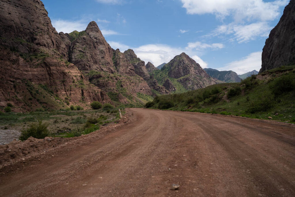 Après un passage dans la vallée de Barkson et dans les canyons, on croise Sophie et Baptiste par hasard, deux français que nous avions rencontrés plusieurs mois auparavant en Slovénie. On passe la nuit ensemble en posant nos tentes sur la plage avant de mettre le cap sur Bichkek pour y retrouver nos hôtes rencontrés sur la route. Tout en découvrant Bichkek, nous apprenons à mieux les connaitre : par exemple, pour vivre, le premier couple achète et vend des pneus tandis que le second conçoit et vend des vêtements vers Moscou.